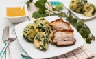 Ropogós császárhús spenótos sajtgombóccal